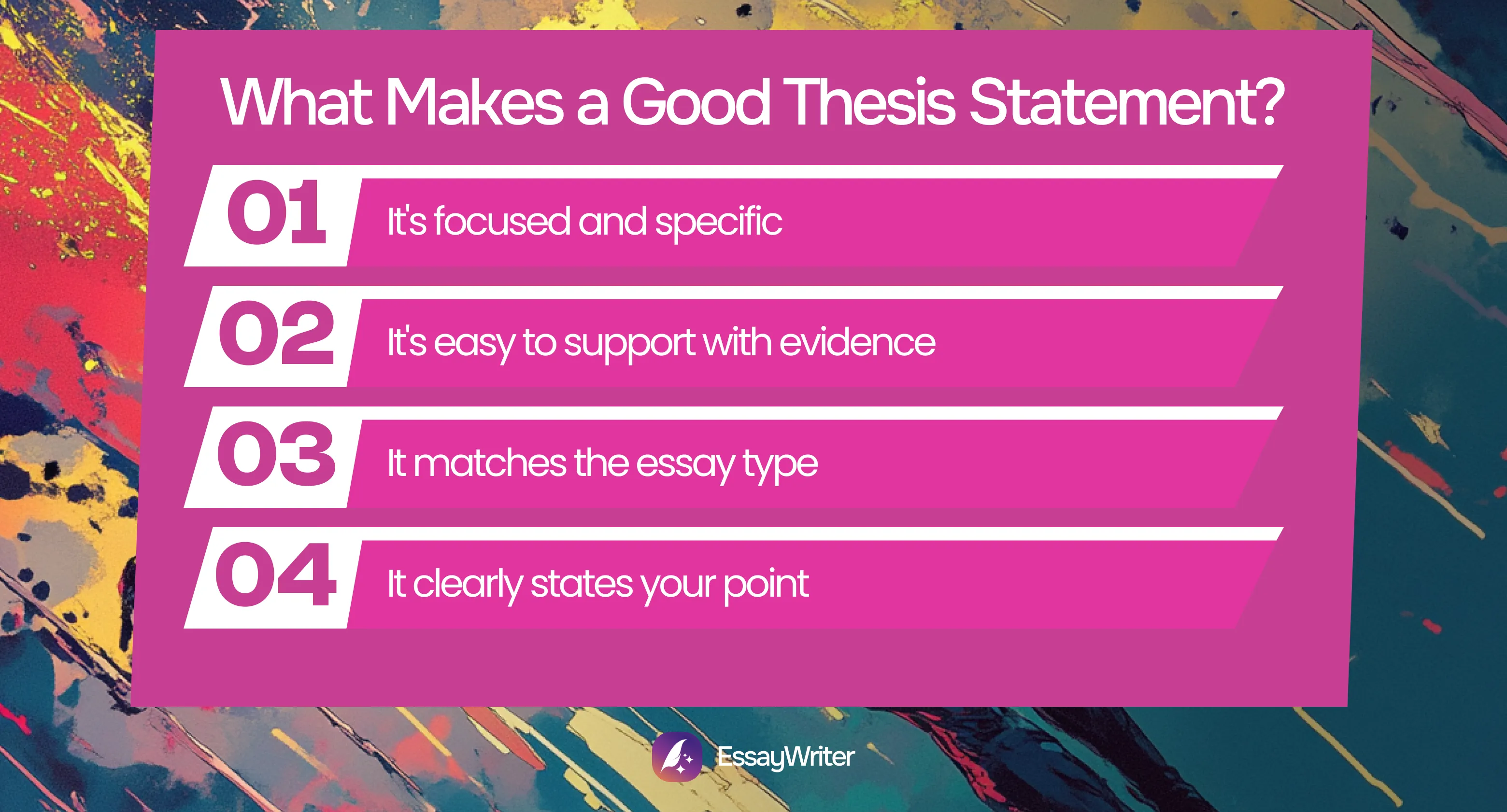 You might come across the best college essay topic ideas but still be unable to put a paper together unless your thesis statement is equally strong. Remember, any essay will quickly fall apart if the thesis statement is weak or confusing.